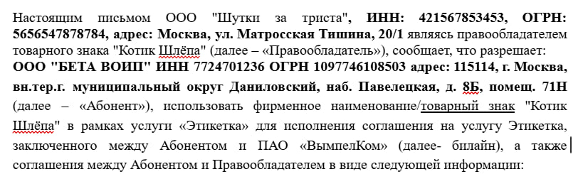 - Если не являетесь правообладателем товарного знака, который хотите использовать в «этикетке» — отправьте лицензионный договор, договор франшизы (если они не конфиденциальны) или согласие от правообладателя на использование товарного знака.