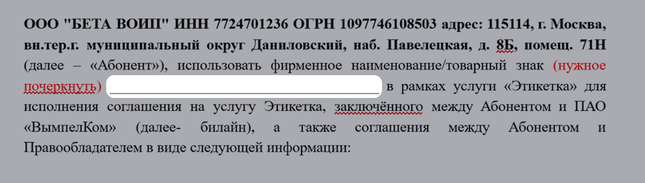 - Составьте два текста «этикетки»: один — на латинице, второй — на кириллице. В «этикетке» должно быть название компании/товарный знак и категория звонка. При этом текст должен быть не больше 32 символов, включая пробелы.
