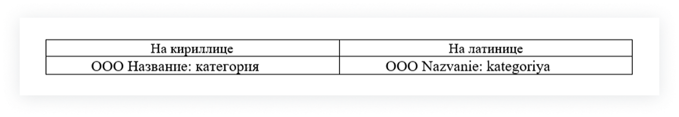 В таблицу впишите текст «этикетки» на кириллице и на латинице.