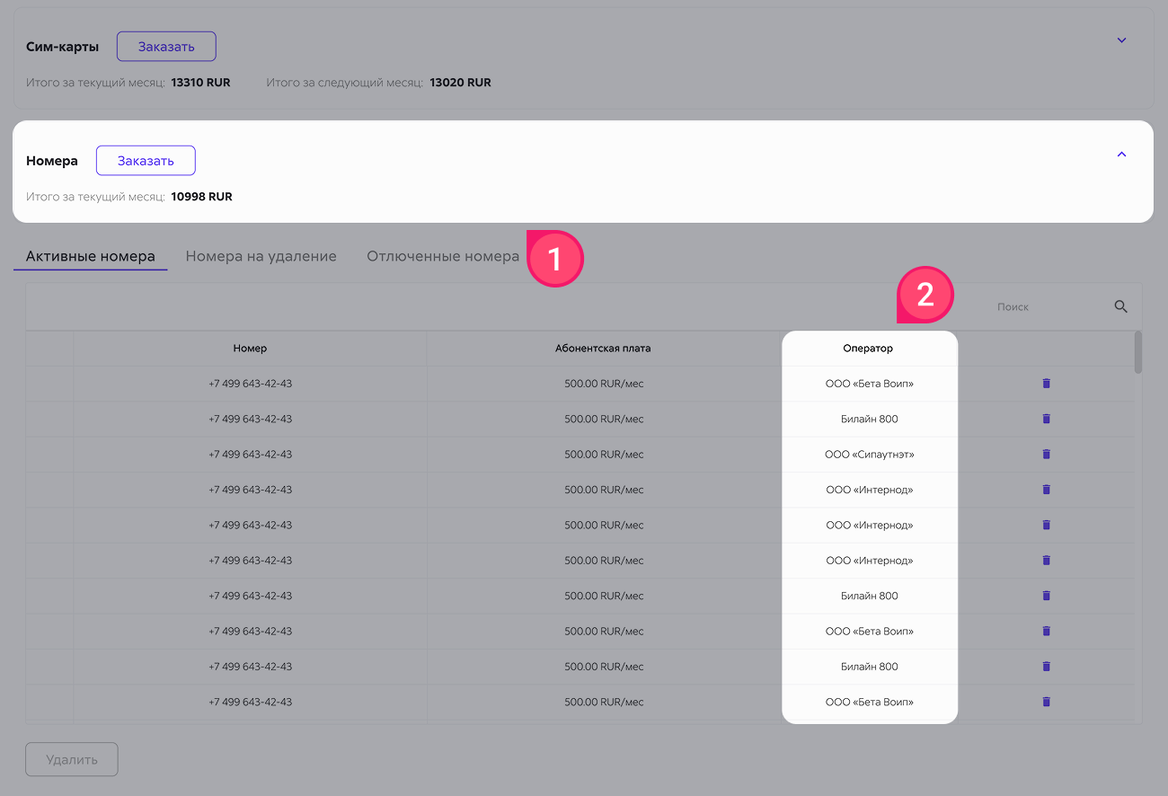 Первым делом нужно понять, для каких номеров вам нужно получить «этикетку». Это можно посмотреть в личном кабинете Сипуни в разделе «Оплата и документы» → вкладка «Номера».