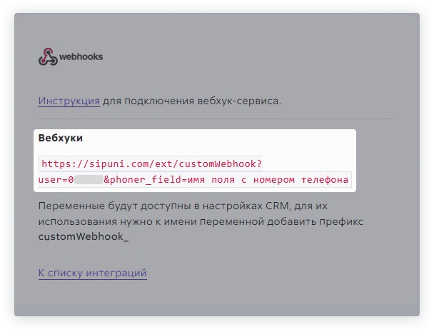 Поля {customWebhook_…} нужны, чтобы Сипуни распознал их и передал в amoCRM как теги или значения дополнительных полей.