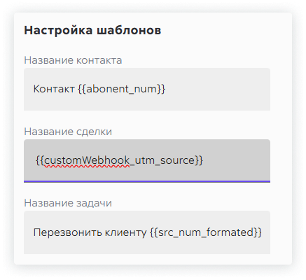 - Название сделки — Сделка {{customWebhook_utm_source}};