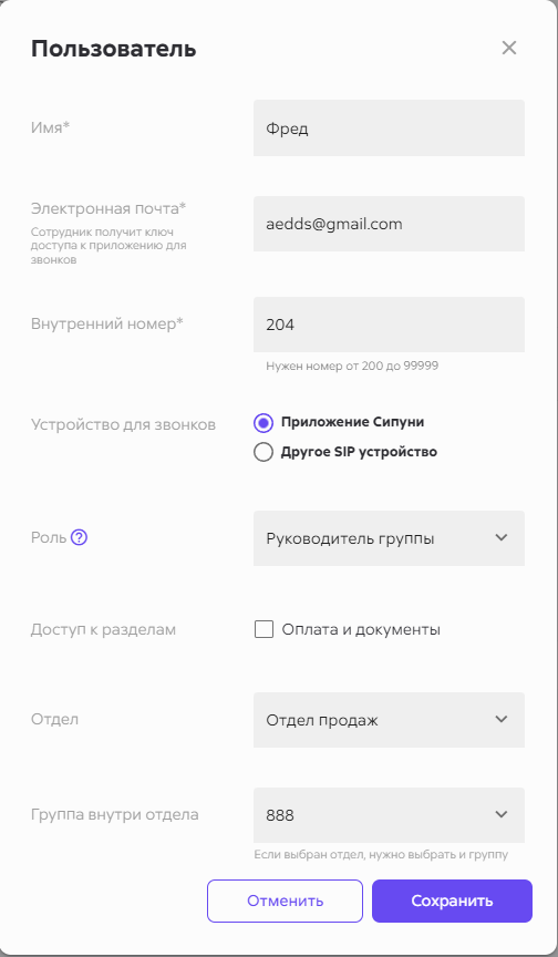 Отлично! Настройки выполнены успешно, теперь вы владеете полным «черным поясом» по настройкам отделов и групп в Сипуни.