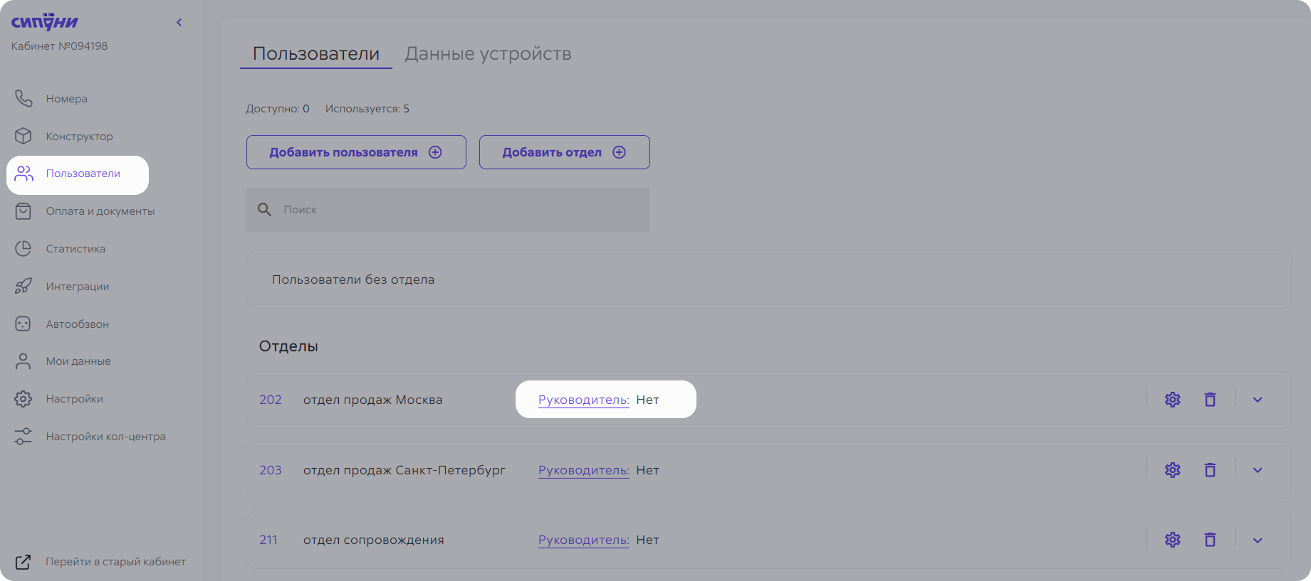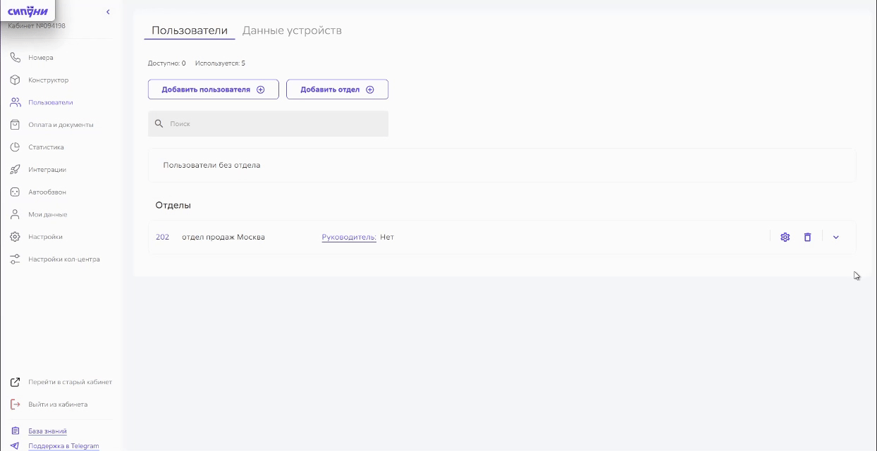 В Сипуни доступ в личный кабинет по умолчанию есть только у владельца. Но неудобно, чтобы за всем следил один человек, поэтому владелец кабинета может выдать доступ к нему сотрудникам, которые управляют телефонией, оплачивают счета, следят за статистикой звонков в отделе.